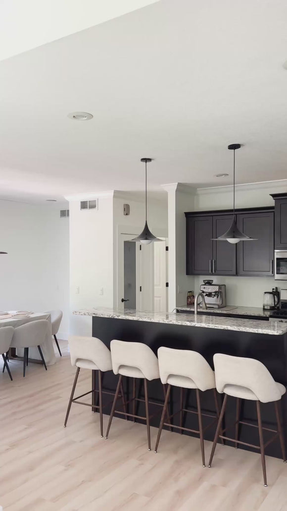 The Flare Pendant measures approximately 11.8" diameter × 9.8" height, making it ideal for standard 8–10 ft ceilings. For kitchen islands or dining tables, we recommend hanging the pendant so the bottom of the shade sits 28–34 inches above the surface for optimal illumination and proportion.