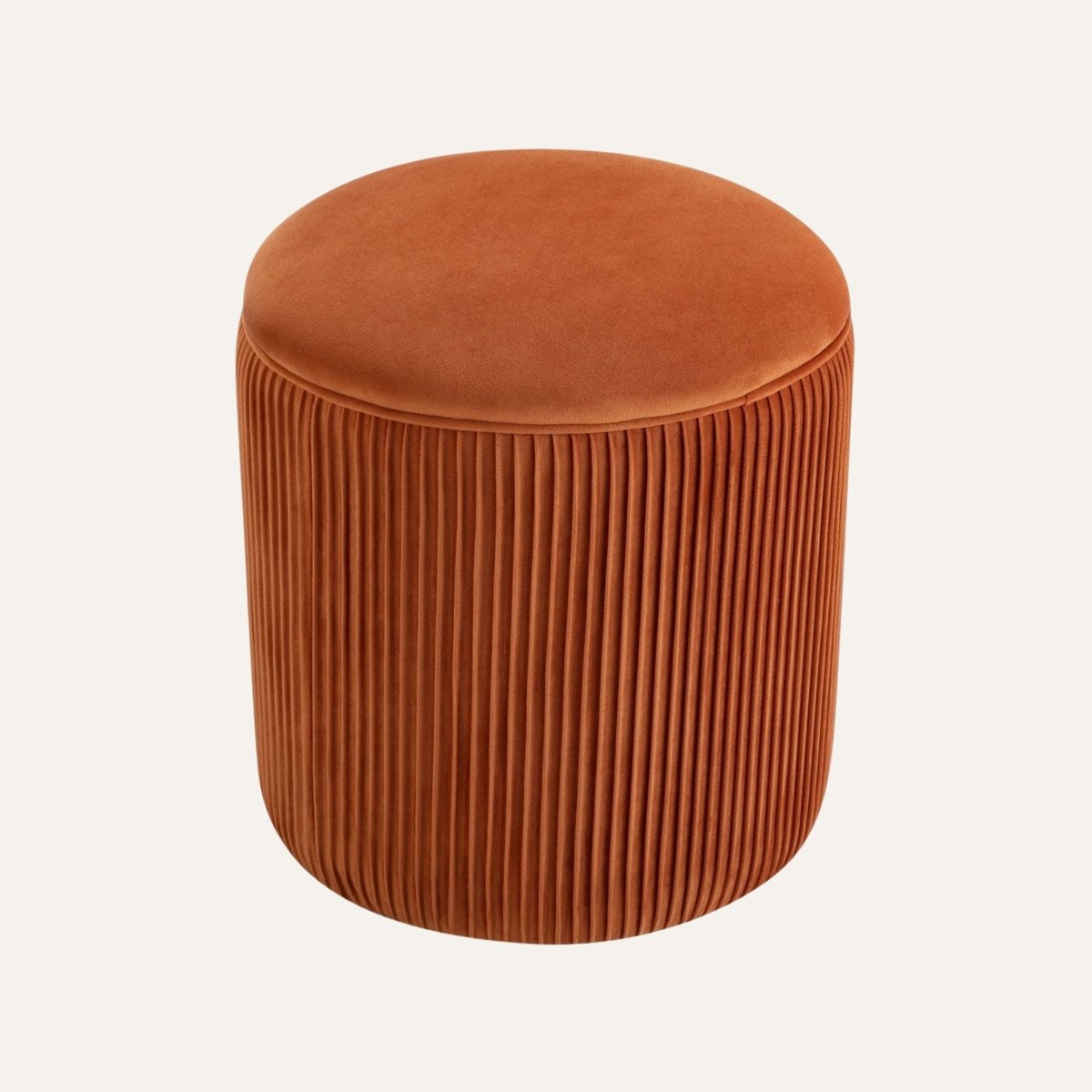The Quinn Ottoman adds a vibrant pumpkin-hued