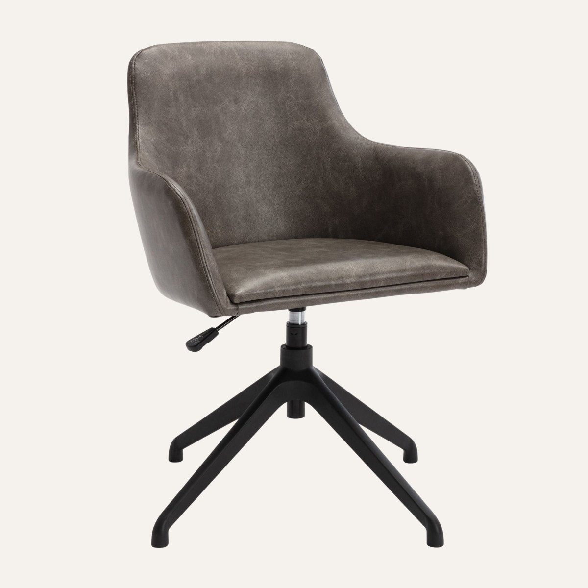 The smart Riley office chair is both stylish and ultra-functional. Tailored with beautiful faux-leather upholstery and sturdy matte-black metal, this handsome design will elevate any workspace setting. Whether you need a comfortable swivel chair for your home study or a set of dashing conference chairs to dress up the office, Riley has your back. The strong, stable base supports the beautifully upholstered, ergonomic seat, so you feel supported as you lean and adjust your body comfortably into the foam-filled cushioning. The easy-to-use lever under the seat allows you to change the seat’s height to your preference.