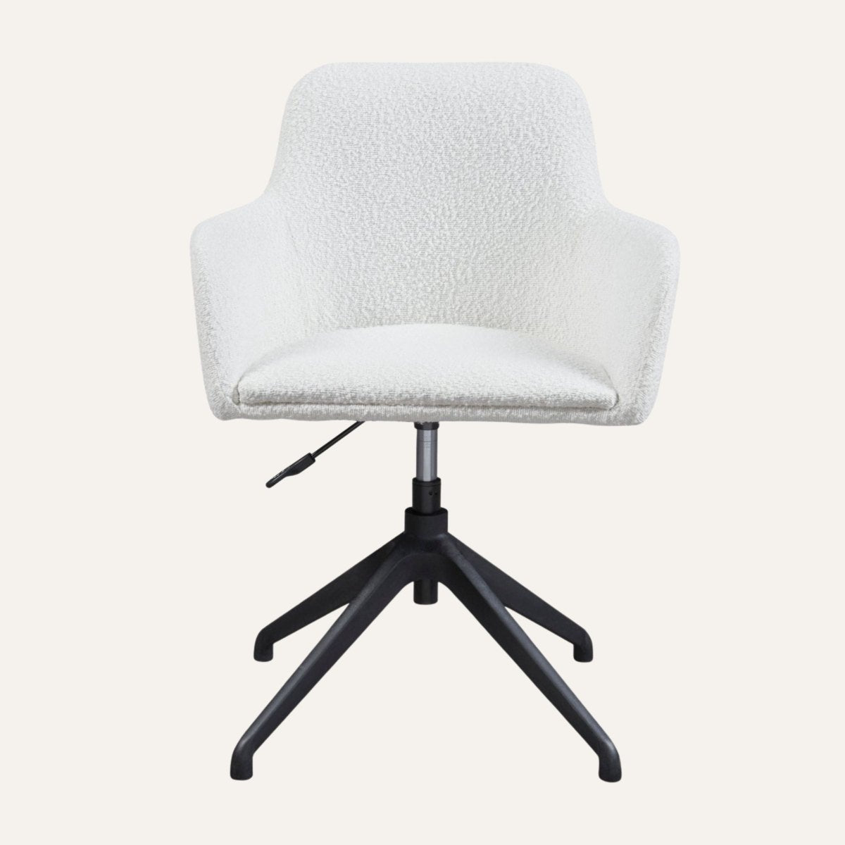 Located under the seat, the Riley Office Chair’s easy-to-use lever enables quick height adjustments to align with desk levels, promoting ergonomic comfort for tasks like typing or brainstorming, ensuring seamless functionality.